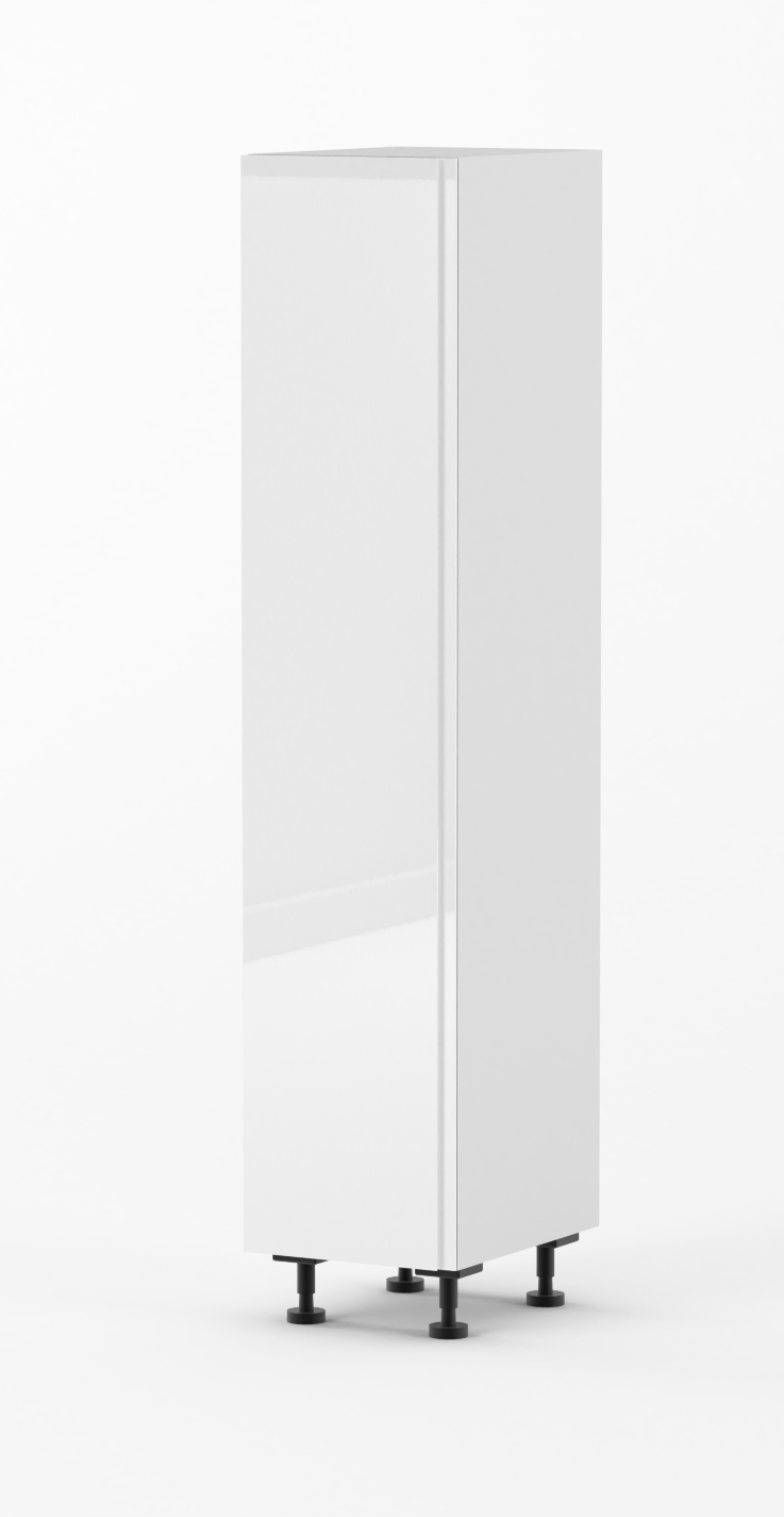The cabinet's body is made from 16mm HMR moisture resistant board with a solid 16mm thick back. Comes flat packed with adjustable feet. Does not include Toe-kick, Handle.