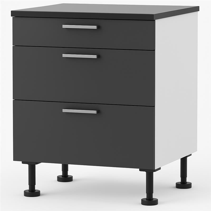 Rome Black - 600mm wide 3 drawers - White Body/Black runners